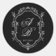 Adesivo Redondo Elegant Black Floral Crest Monogram Script Wedding