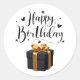 Adesivo Redondo Elegant Black & Gold Happy Birthday