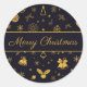 Decorate your gifts, envelopes, packaging, and holiday projects with this stylish Christmas sticker featuring a gold festive pattern on a deep black background. The detailed illustrations include snowflakes, bells, reindeer, stars, and ornaments, giving each sticker a luxurious seasonal flair. Perfect for sealing envelopes, enhancing gift wrap, scrapbooking, planner decorating, and holiday crafting.