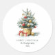 Our wonderful little Christmas tree in a gold pot is elegant and looks great all holiday season. It is as cute as can be. We love the shiny gold and red ornaments, dusting with snow, and red-ribboned bows on presents ready to be given. All done in watercolor of vintage origin, but you wouldn’t know it because it looks so modern and trendy. We hope you love it too and will enjoy these “Merry Christmas” stickers on your envelopes and presents for your beloved relatives and friends this wintertime.