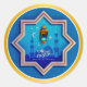 Celebrate the holy month with these stunning Ramadan Kareem Stickers. The design features a beautiful 3D-style aesthetic, centered around a traditional glowing hanging lantern (Fanous) and a serene mosque silhouette against a deep blue night sky. The artwork is framed within a sophisticated geometric eight-pointed star (Rub el Hizb) and finished with a premium gold-toned circular border.