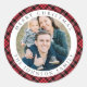 Elegant Red Plaid Photo Christmas Classic Round Sticker.