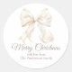 Elegant White Bow Merry Christmas Classic Round Sticker White bow detail brings a fresh, modern feel to a classic floral theme—ideal for those who love a sophisticated, feminine aesthetic.
