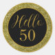 Adesivo Redondo Elegante Aniversário de 50 anos Olá Preto Dourado
