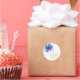 Essas etiquetas modernas e elegantes de primeira comunhão floral em aquarela azul podem ser personalizadas com sua informação em tipografia dourada moderna. Desenhado por Thisisnotme©