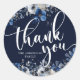 Adesivo Redondo Elegante Azul Marinho e Floral Prateado