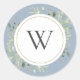 Com delicada aquarela deixa verde sobre fundo azul empoeirado, este adesivo botânico chic pode ser personalizado com o seu monograma inicial. Perfeito para casamentos, chás de panela, chás de fraldas, batismos, festas de noivado, comemorações de aniversário, graduações, encontros de aniversário e outros eventos especiais ao longo do ano! Projetado por Thisnotme©