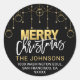 Os adesivos personalizados de volta do Feliz Natal em cores pretas e douradas. Estrelas brilhantes/luzes com ornamentos pendurados com arcos. Personalize-os adicionando seu nome e endereço de retorno. Perfeito para receber cartões, envelopes, presentes....