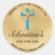 Adesivo Redondo Elegante Blue Dourado Cross Primeira Comunhão Obri