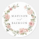 Adesivo Redondo Elegante Blush Rosas e Greenery Wedding