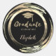 Adesivo Redondo Elegante Boina de Gradução Dourada com Brilho,Pret