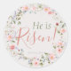 Adesivo Redondo Elegante Botânico "Ele é Risen" Páscoa Cristã