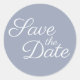 Adesivo Redondo Elegante Caligrafia Azul empoeirado Salve a Data