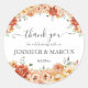 Casamento " Obrigado" favorece adesivos adornados com flores de aquarela em tons de laranja, vermelho, amarelo, pêssego e verde.