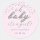 Adesivo Redondo Elegante Chá de fraldas Rosa Glitter Girl Obrigado