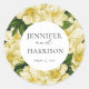 Elegante convite de casamento botânico com os detalhes do seu casamento na frente e no centro com buquês de flores pintadas de jardinia branca, prendas de fôlego de bebê, folhas verdes de sage e folhas verdes vibrantes nos cantos. Este convite de casamento floral branco é perfeito para casamentos de jardim e casamentos de primavera ou de verão. Se precisar de ajuda ou de itens correspondentes, entre em contato comigo.