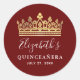 Adesivo Redondo Elegante Coroa Quinceanera Vermelha Burgundy Doura