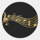 Adesivo Redondo Elegante de Notas de Música Douradas e Negras