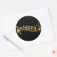 Estes elegantes adesivos redondos pretos apresentam salvos de música, uma clave tripla e notas de música em ouro falso. Perfeito para professores de piano, estudantes de violino ou amantes de música.