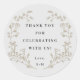 Elegante obrigado de coroa botânica que você cola. Faux gold color wreath apresentado em uma cinza de luz com nomes. Perfeito para sacos de presentes de casamento ou chá de panela para seus convidados.