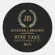 Design de rótulo de vinho simples e elegante. Dourada e prateada coroa com um monograma personalizável. Modelo de texto personalizável e plano de fundo com alteração em preto.