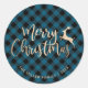 Adesivo Redondo Elegante Dourado Feliz Natal Preto e Xadrez Azul