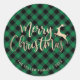 Adesivo Redondo Elegante Dourado Feliz Natal Preto e Xadrez Verde