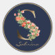 Adesivo Redondo Elegante Escuro Azul Dourado Monograma - Letra S
