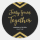 Este elegante adesivo de aniversário redondo apresenta um giz geométrico e a palavra "Quarenta Anos Juntos" em dourado falso contra fundo preto. É excelente para a celebração do 40º aniversário de casamento. Confira os convites e itens correspondentes aqui http://www.zazzle.com/collections/modern_faux_gold_chevron_celebration_collection-119531050277382712?rf=238364477188679314 Personalize-o com seus detalhes substituindo o texto do marcador de posição. Para obter mais opções, clique no botão "Personalizar". *Observe que a Marca d'água do Zazzle que aparece na visualização de zoom NÃO aparecerá no produto impresso final. © Rosewood e Citrus