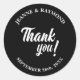 Eleve os brindes do seu casamento com nosso "Adesivo Redondo Clássico de Agradecimento Preto Personalizado Elegante". Esses adesivos sofisticados apresentam um fundo preto elegante, personalizados com seus nomes e data de casamento em escrita elegante. Perfeitos para selar envelopes, decorar presentes ou melhorar brindes, eles oferecem uma maneira estilosa de expressar gratidão aos seus convidados. O design clássico preto exala elegância atemporal, tornando cada adesivo um souvenir especial que adiciona um toque de refinamento ao seu dia memorável.