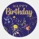 Adesivo Redondo Elegante Feliz Aniversário Flores Selvagens Redond