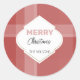 Adesivo Redondo Elegante Feliz Natal Tartan Burgundy