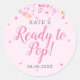 Adesivo Redondo Elegante Flor Desabrochando Rosa para Baby Shower