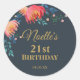 Adesivo Redondo Elegante, Flores Whimsical, Azul Escuro, Destaque
