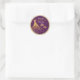 Este adesivo de festa de aniversário mascarada apresenta um vestido de diamante sunset e máscaras contra um fundo roxo, dourado e de boque. Perfeito para seus convites de festas. Personalize facilmente estes convites com a sua própria redação clicando no botão "personalizar".