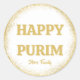 Adesivo Redondo Elegante Glitter Dourado de Purim Feliz Personaliz