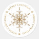 Adesivo Redondo Elegante Glitter Dourado Floco de Neve Feliz Natal