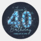Adicione um toque de luxo à celebração dos 40 anos com esses adesivos de aniversário de pedras preciosas azuis glamorosos. O design apresenta uma tipografia "40" impressionante criada a partir de safiras falsas e diamantes azuis, colocada contra um fundo sofisticado de azul-marinho escuro e borrão preto que simula um céu noturno cintilante.