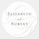 Adicione um toque final refinado aos detalhes do seu casamento com este adesivo redondo elegante e minimalista, apresentando um monograma bege atemporal. Perfeito para selar envelopes, decorar sacolas de lembranças ou adicionar um toque pessoal à embalagem do casamento.