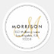 Rótulo de endereço de retorno do monograma de script ouro elegante / adesivo redondo / selo de envelope. Mínima fronteira dupla.