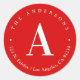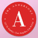 Adesivo Redondo Elegante Monograma Vermelho e Branco Endereço de D