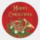 Adesivo Redondo Elegante Música de Natal Trompa Francesa Vermelha