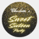 Adesivo Redondo Elegante neon Dourado Retro Negro Doce 16º Anivers