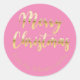 Um adesivo de Natal decorado com "Feliz Natal" num olhar de ouro metálico sobre fundo cor-de-rosa. Personalize-o com a sua própria mensagem.