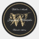Adesivo Redondo Elegante Preto Branco Monograma Dourado Nome Scrip