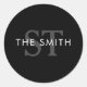 Adesivo Redondo Elegante preto e branco Monograma inicial personal