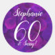 Elegante Roxo 60 e Sassy Birthday Favor Clássico Redondo Vinheta Redonda Clássica Especial elegante de festa de aniversário púrpura especialmente desenhada para seus amigos que estão fazendo 60 e são Sassy! Personalize este adesivo de favorecimento de festa de aniversário com o nome deles. Aplique este adesivo a favores de aniversário, envelopes para convites, notas de agradecimento ou qualquer outra coisa que você crie adicionar seus toques de acabamento especiais para a festa. Planeje sua festa com mais festas de aniversário da nossa loja! Seus amigos ou família vão adorar uma festa de aniversário elegante e roxa.