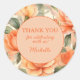 Adesivo Redondo Elegante Rosa Floral Laranja de Pêssego Obrigado