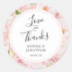 Adesivo Redondo Elegante Rosas Rosa Favor do Casamento Obrigado