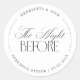 Esta elegante etiqueta redonda "The Night Before" apresenta uma tipografia clássica refinada com uma sutil borda circular e um layout monocromático limpo. A mistura de letras serifadas e escrita suave lhe dá um visual atemporal e discreto, perfeito para selar envelopes, caixas de favores ou embalagens com um toque simples e sofisticado. Projetada para eventos com uma estética minimalista e clássica, esta etiqueta combina perfeitamente com estilos modernos ou tradicionais.